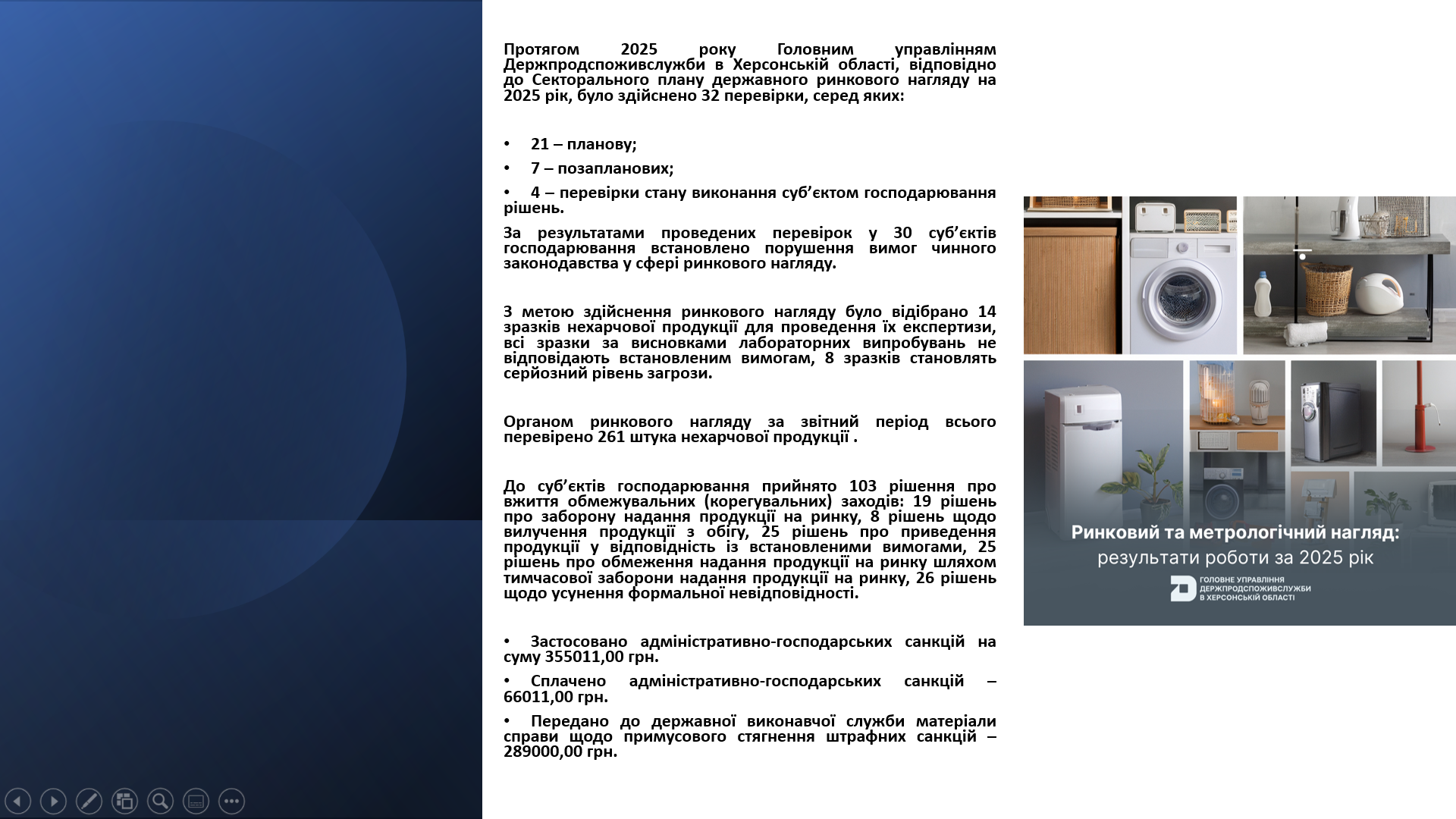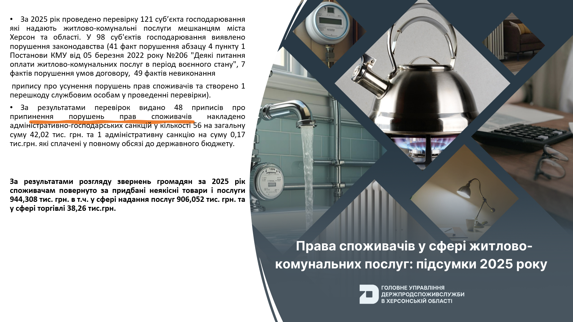 Напередодні Всесвітнього дня захисту прав споживачів, який щороку відзначається 15 березня, у Головному управлінні Держпродспоживслужби в Херсонській області відбувся брифінг на тему: «Повноваження Головного управління Держпродспоживслужби в Херсонській області в частині захисту прав споживачів, державного ринкового нагляду та контролю за регульованими цінами, контролю за рекламою та дотриманням антитютюнового законодавства в умовах воєнного стану. Підсумки роботи за 2025 рік».