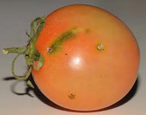 Рис. 1 Ознаки пошкодження плоду томату гусеницями Tuta absoluta Meyr.