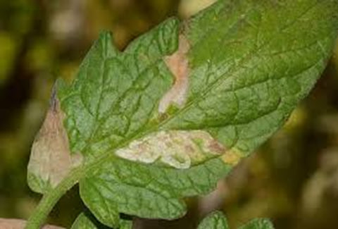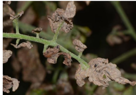 Рис. 2 Ознаки пошкодження листків гусеницями Tuta absoluta Meyr.