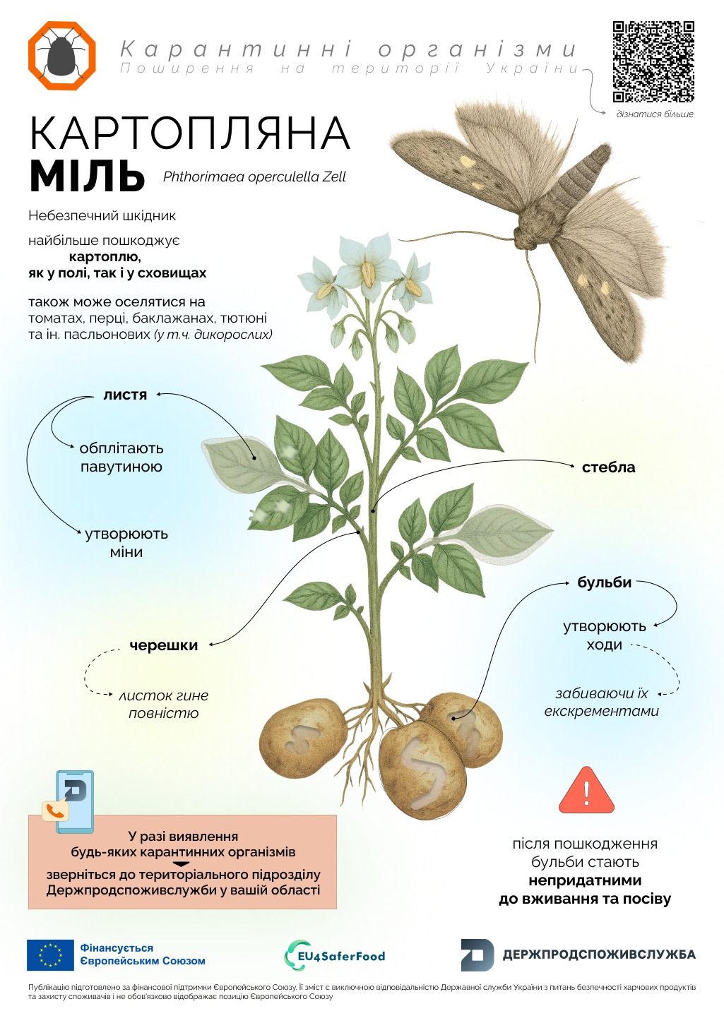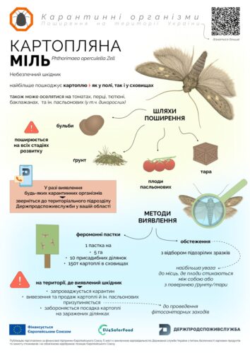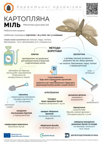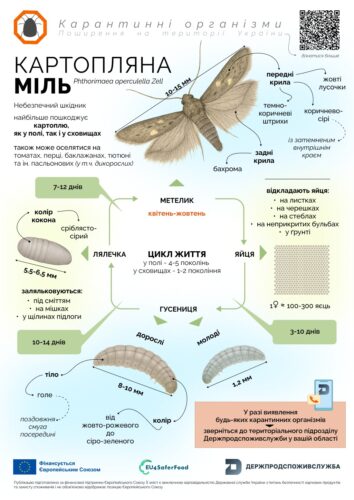 Спільно з європейським проєктом EU4SaferFood створили інформаційні матеріали щодо ознак пошкодження, заходів боротьби та шляхів поширення картопляної молі.