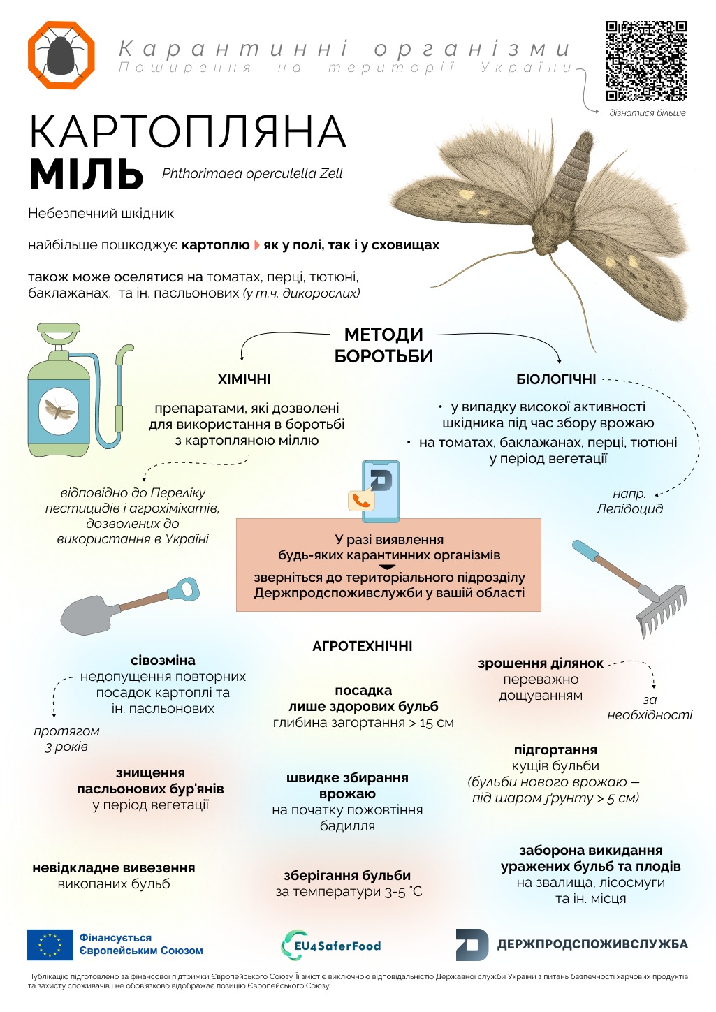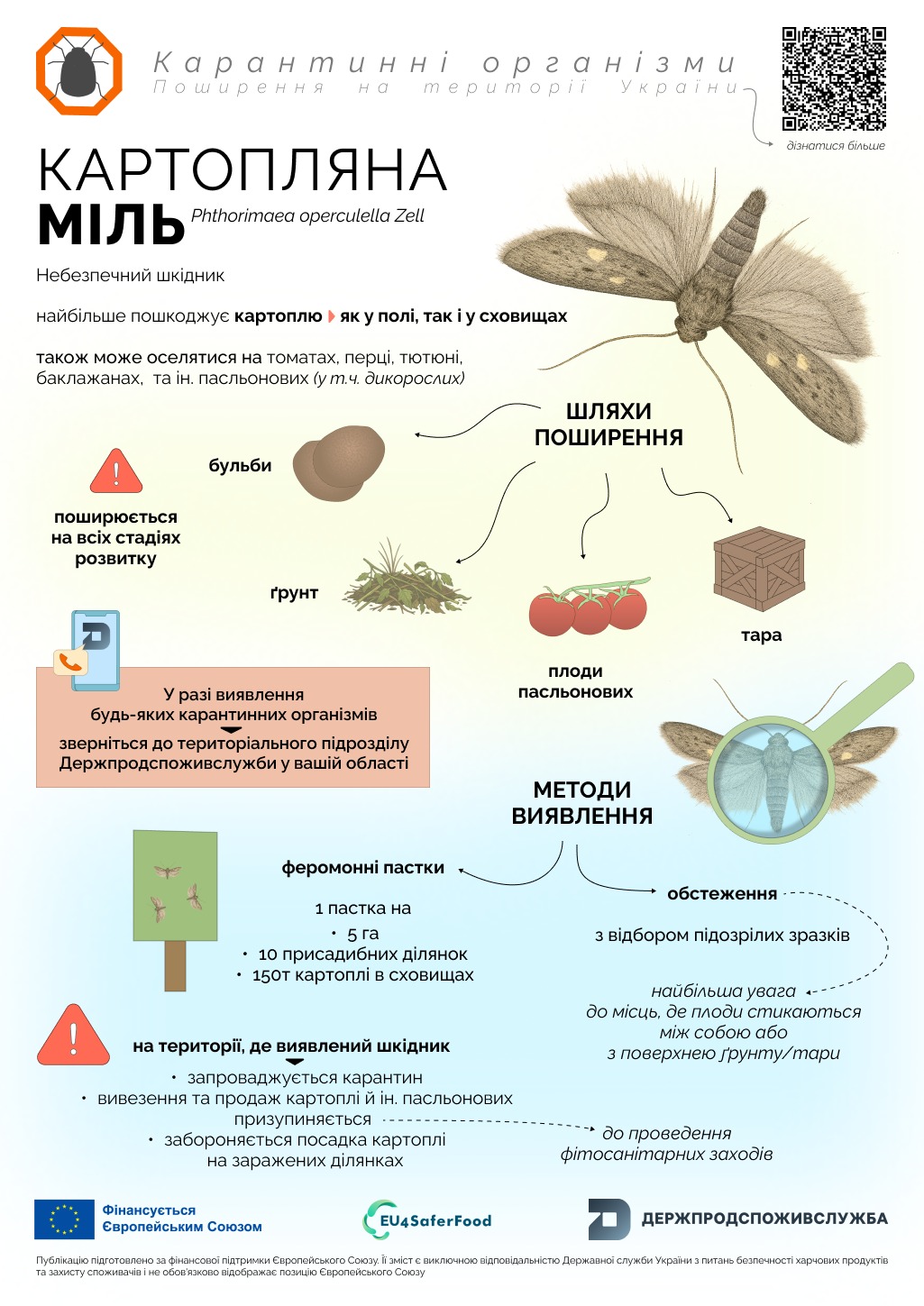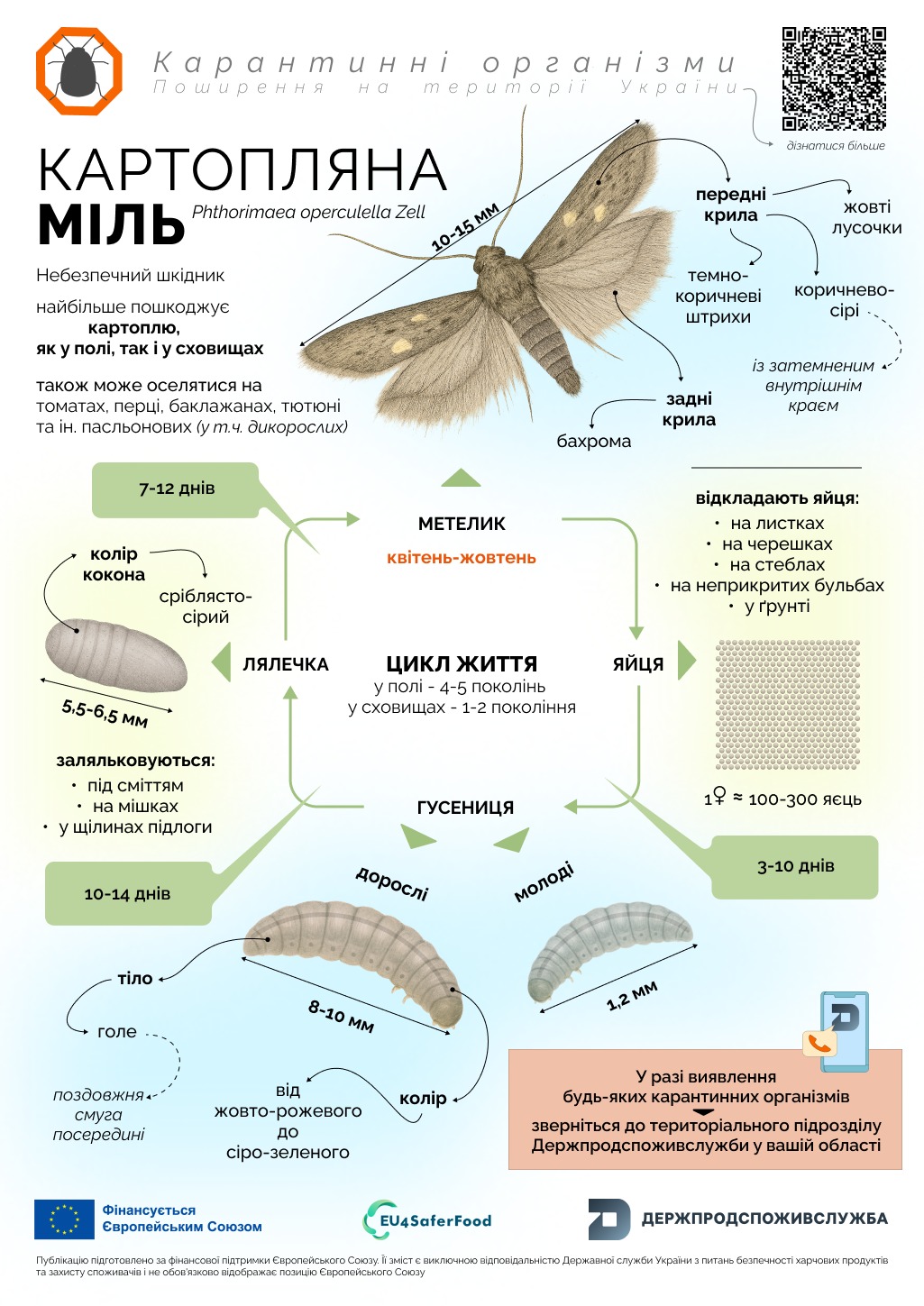 Пам’ятайте: картопляна міль – небезпечний карантинний організм, який може призвести до значних економічних втрат. Лише своєчасне виявлення та злагоджені дії допоможуть запобігти її поширенню в Україні.