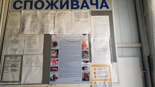 На території ринку в місцях реалізації рослинної продукції виявили скупчення одноразових паперових ящиків та пластикової тари. На ринку необхідна наявність тари, яку можна продезінфікувати. М’ясомолочний павільйон знаходиться в неналежному санітарному стані, прилавок для реалізації м’яса покритий брудною плівкою. У павільйоні знаходиться заіржавілий стіл, прикритий для «краси» плівкою. Колода для розрубу м’яса, торгівельний інвентар не відповідає ветеринарно-санітарним правилам для ринків.