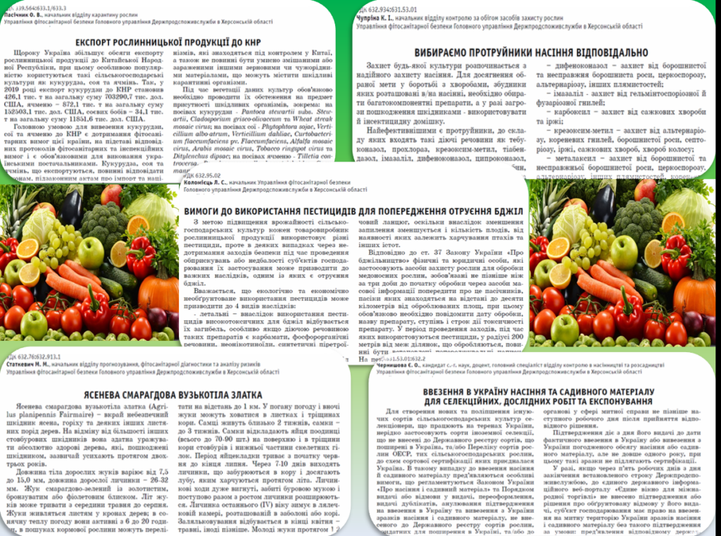 У квітні 2020 року спеціалісти Управління фітосанітарної безпеки прийняли участь у VIIІ Міжнародній науково-практичній конференції молодих вчених і спеціалістів «Селекція, генетика та технології вирощування сільськогосподарських культур» (організатори – Миронівський інститут пшениці ім. В.М. Ремесла, Український інститут експертизи сортів рослин) та в ІІІ Всеукраїнськійнауково-практичній Інтернет-конференції «Економіка, фінанси, управління: наукові підходи та практика реалізації» (ДВНЗ «Херсонський державний аграрний університет»)