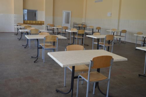 У їдальні столи розставили на відстані один від одного, снідати, обідати та вечеряти за одним столом зможуть не більше двох дітей.