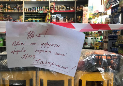 Магазини дотримуються графіку вологого прибирання, продукти харчування фасовані або накриті, співробітники забезпечені засобами індивідуального захисту, є дезінфекційні засоби для відвідувачів. До магазинів не пускають більше двох покупців і без захисних масок, товар відпускається виключно продавцем, самообслуговування заборонено.