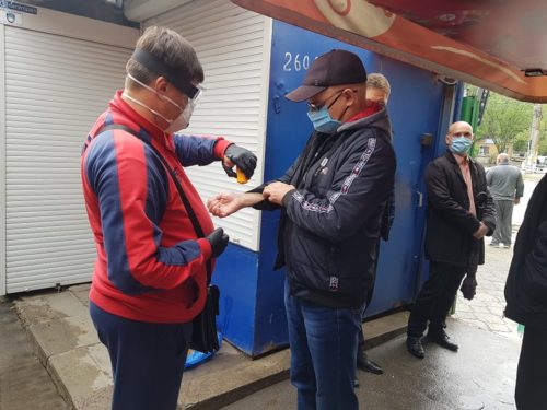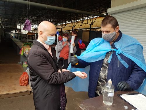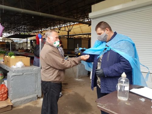 – Наразі працює 11 людей в продуктовій зоні, 6 людей з м’ясо-молочною продукцією та ще 4 людини продають засоби гігієни. Ми забезпечені дезінфікуючими засобами, на кожному з двох входів проводиться температурний скринінг, для відвідувачів є антисептики. Кожні 3 години продавці дезінфікують робочі місця, кожну годину через гучномовець доноситься інформація щодо дотримання правил карантину. Після завершення робочого дня проводиться заключна обробка території ринку. – заявив директор ринку «Північний» Антон Царьок.