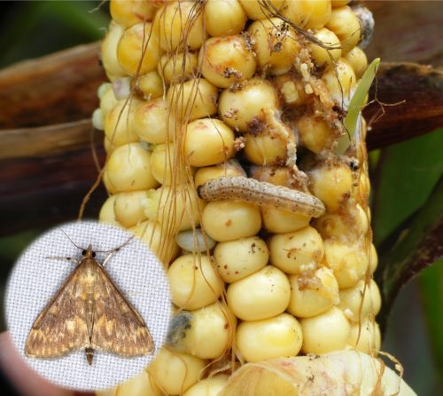 Стебловий кукурудзяний метелик (Ostrinia nubilalis Hb.) – пошкоджує внутрішню частину стебел і качанів кукурудзи. Сприятливі умови для розвитку метелика складаються в районах із температурою в червні – серпні вище за +20 °С та опадами в цей час близько 200 мм.
